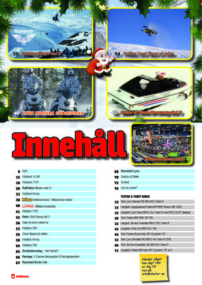 På racing sidan har vi både nyheten med Arctic Cats samt Lynx racesled samt även att X-Games återkommer med snöskoter flippar på schemat.